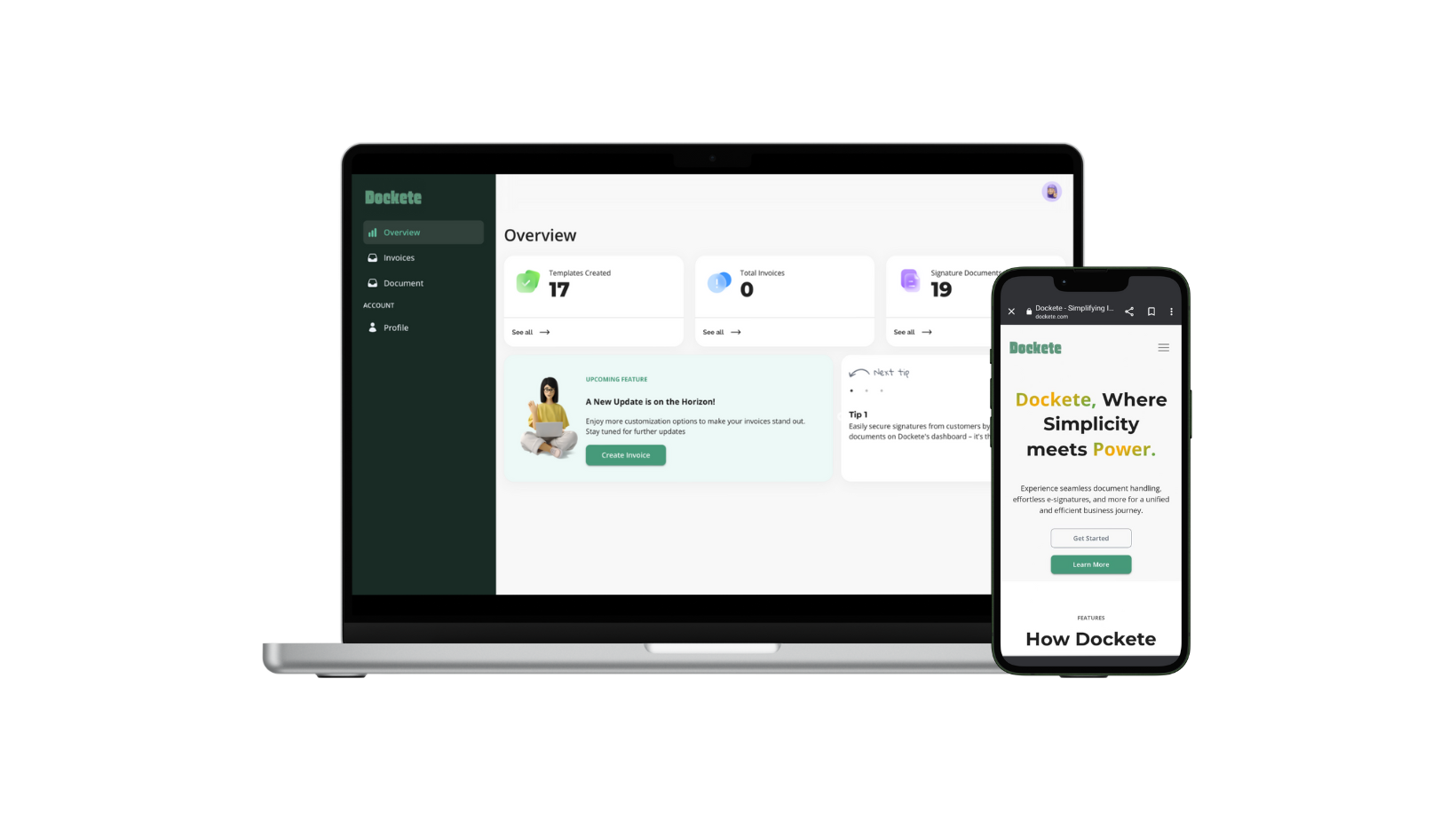 Dockete not only provides invoices but also lets you create documents and get digital signatures from their customers on Dockete itself. It emails their recipients with all the details.